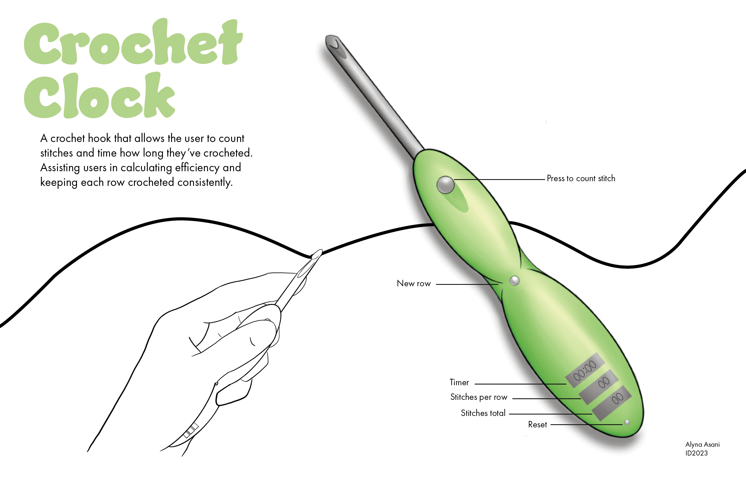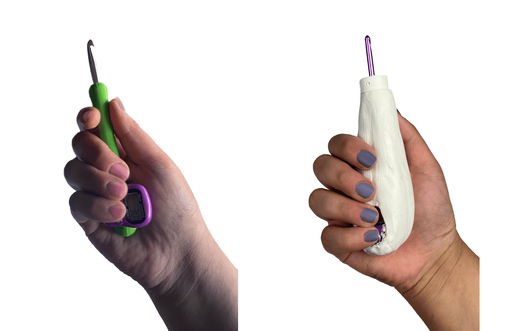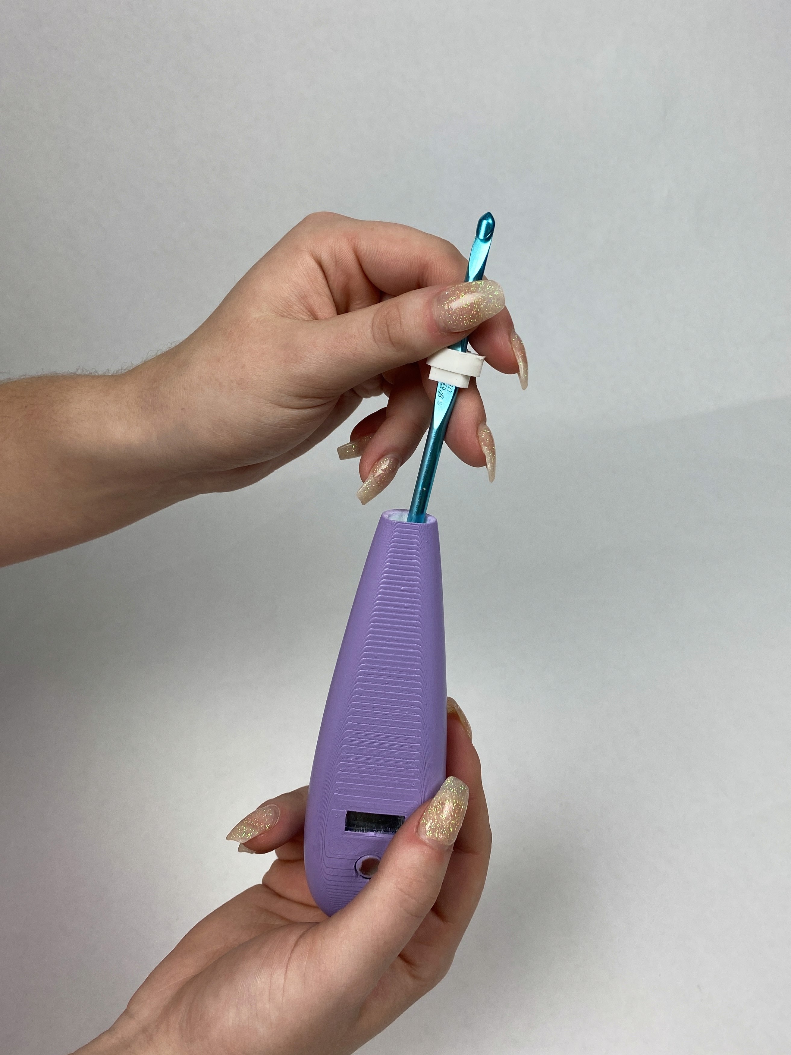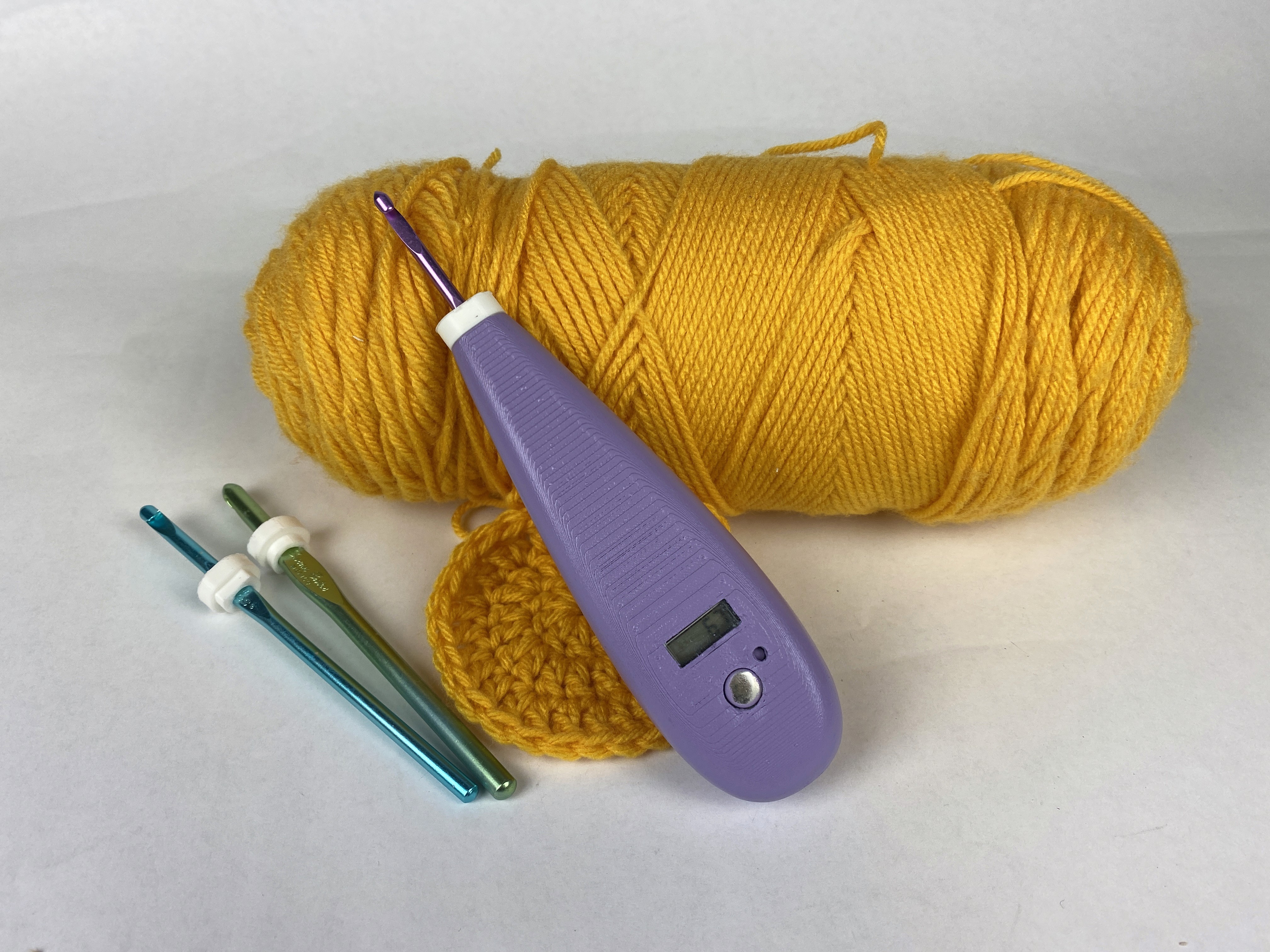 Count is an ergonomic crochet hook handle with a built-in stitch counter aiming to make crocheting easier, more efficient, and more accessible.